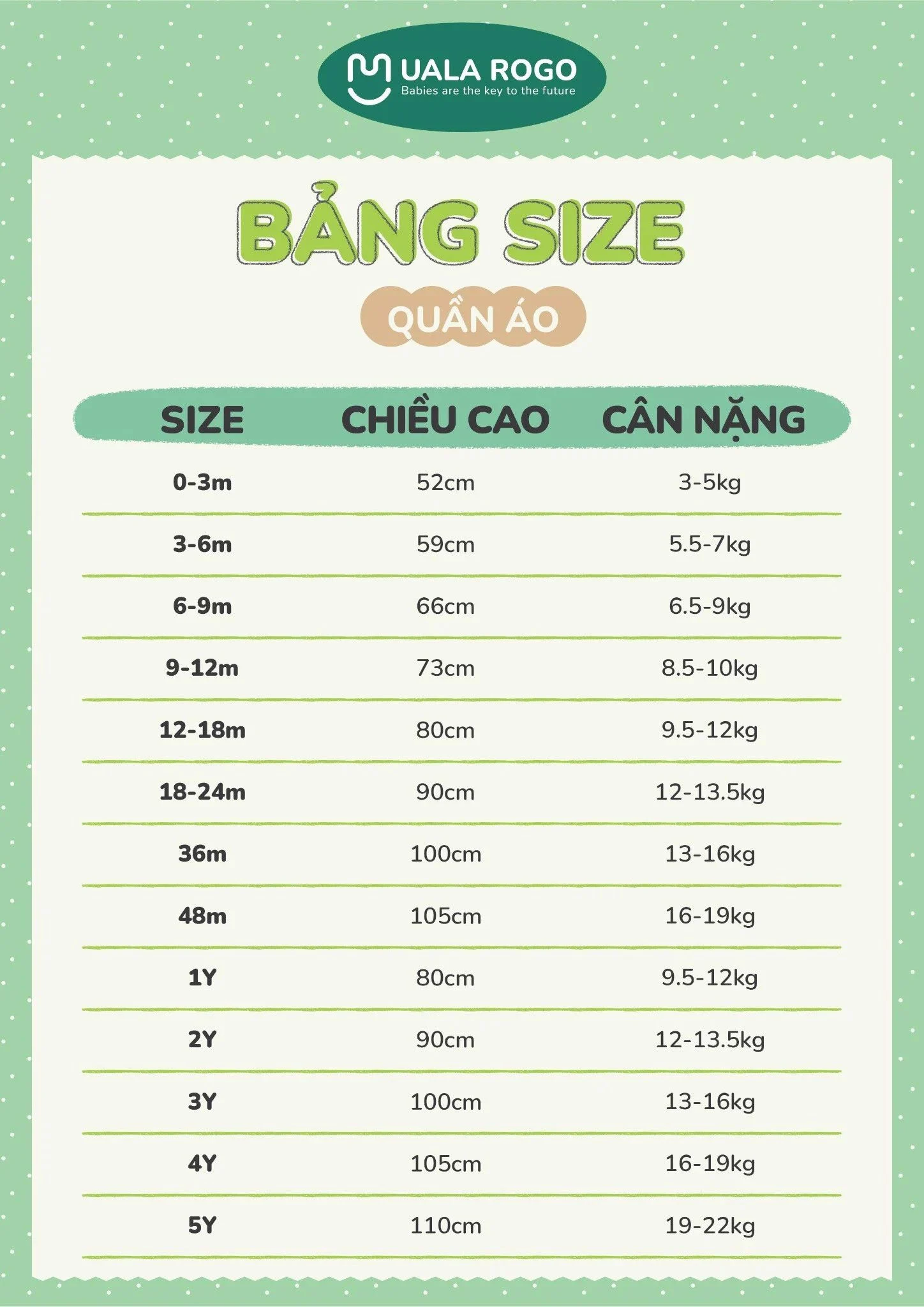 Để lựa chọn sản phẩm vừa vặn với bé, các mẹ có thể gửi tin nhắn cho UALAROGO hỗ trợ nhé !